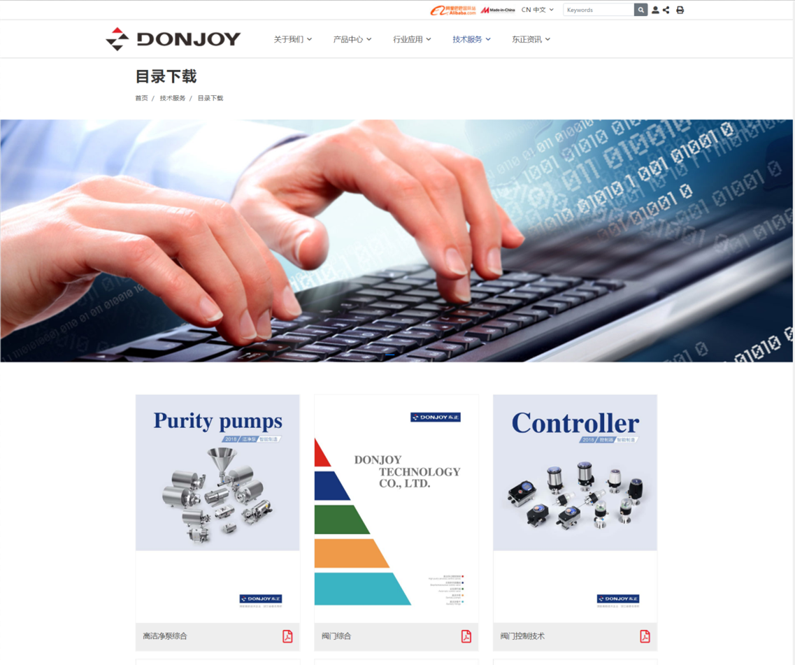 點(diǎn)開“技術(shù)服務(wù)”版塊,您可以看到我們?yōu)槟峁┊a(chǎn)品目錄,相關(guān)產(chǎn)品的視頻動(dòng)畫以及產(chǎn)品所通過的資質(zhì)認(rèn)證。這些集中體現(xiàn)了東正科技關(guān)于高潔凈泵、閥門控制及無菌閥門等等領(lǐng)域的先進(jìn)理念與創(chuàng)新思維,是東正多年來行業(yè)經(jīng)驗(yàn)的結(jié)晶與沉淀。