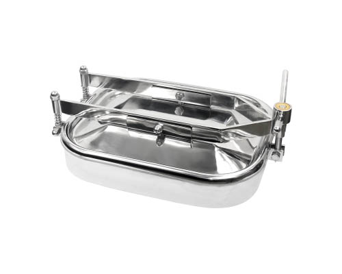 ◎外開式人孔蓋子 ◎扳手式手柄,手輪式手柄 ◎內表面:Ra0.8μm-0.5μm ◎外表面:拋光處理、亞光處理、噴砂處理 ◎最大壓力:≤0.5bar ◎墊圈:EPDM 、NBR、SILICON、FPM符合FDA177.2600 ◎規格:235*185,425*335,535*435 ◎高度: 65,80,100,120,150 ◎材質:AISI304(1.4301)/316L(1.4404)