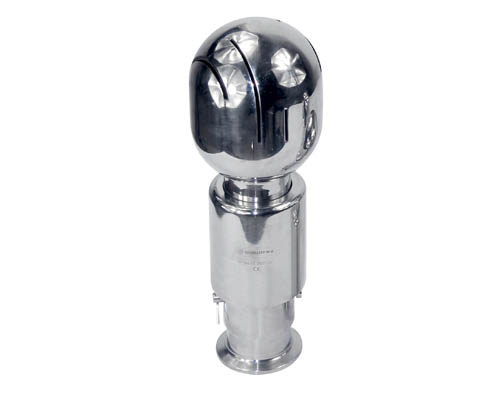 清洗半徑:最大4米(4bar) 清洗角度:180°;360° 球形:橢圓形球 球尺寸:28mm / 45mm/ 65mm/ 75mm 材質:316L 連接方式:內螺紋/外螺紋(1/2"-2"BSP/BSPT)、卡箍(1"-2.5")、插銷(1"-2.5")、焊接(1“-2.5”)