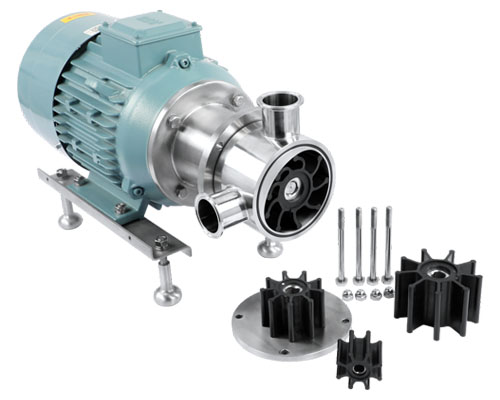 RX系列柔性葉片泵是具有出色自吸性能的容積泵,其自吸能力可達到5米。輸送粘性的產品時效率幾乎達到抽水的效果,因而其用途非常廣泛,抽吸處理非常平穩柔和,決不會攪打和損傷產品,即使像高脂肪乳脂那樣脆弱的產品。大的漿果,即使有半個桃子大小都可以毫無損傷地通過泵,而且該泵運行完全無脈動。通過調節泵的轉速,它還可以用作定量配料泵。
