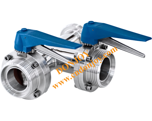 規格:DN25-DN100,1"-4" 標準:DIN SMS RJT Inch 閥體結構:三頭蝶閥、二頭蝶閥,一頭蝶閥控制 連接方式 螺紋式 卡箍 焊接 法蘭 手柄操作:多位手柄和拉桿手柄 氣動操作:常開/常閉和氣/氣 最大壓力:10bar 最高溫度:130℃