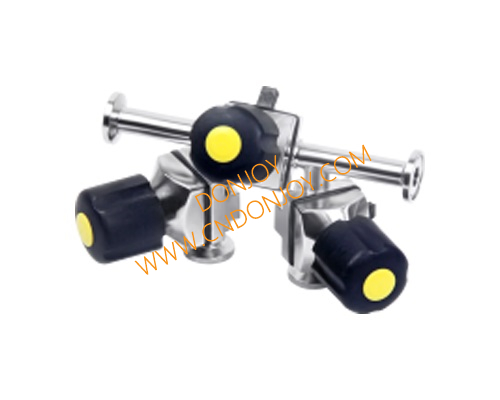 迷你型組合式多通道隔膜閥,該閥門主要應用在料液取樣、生物系統、化驗室等工程上,該閥具備死區= ≤3D。
